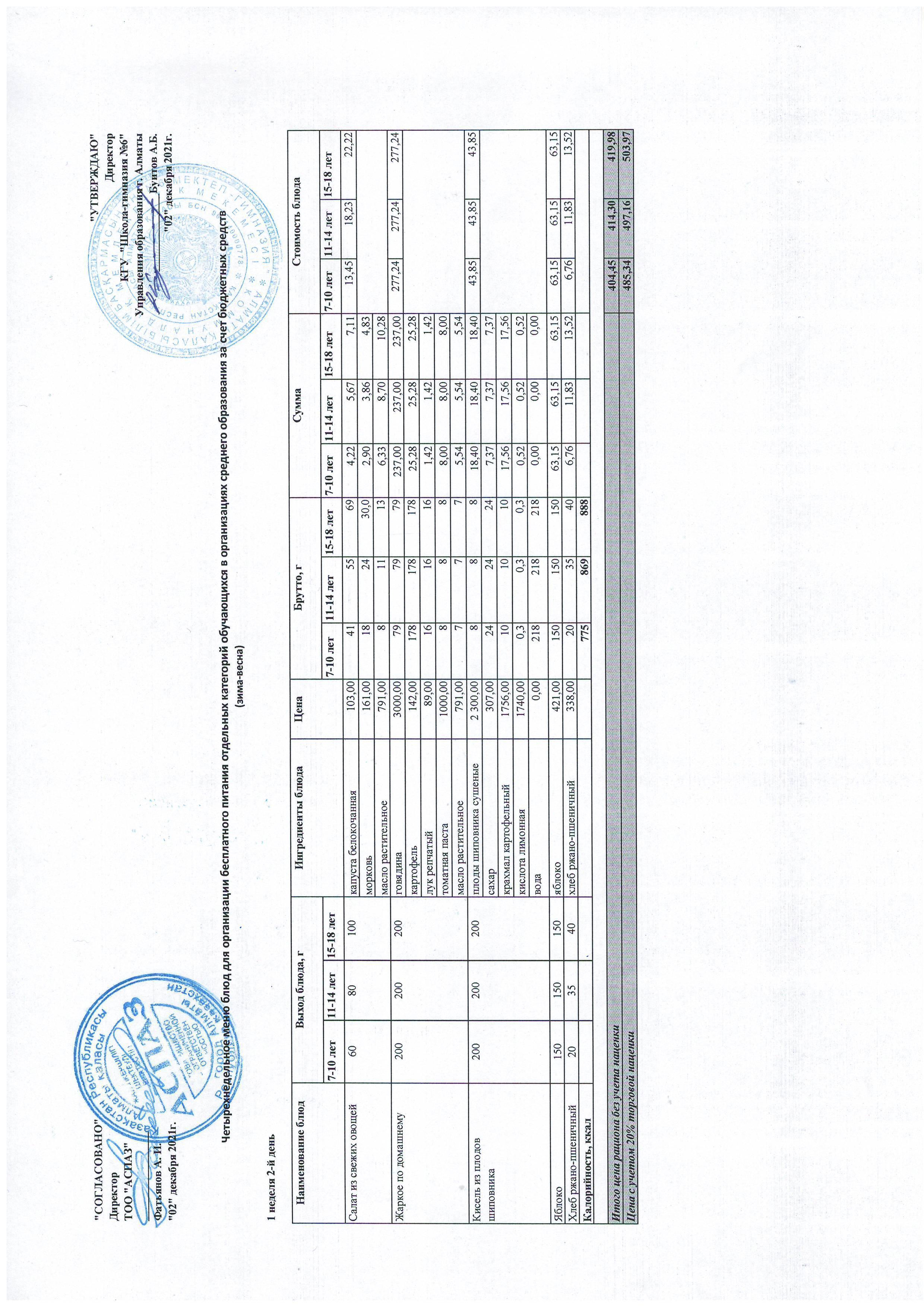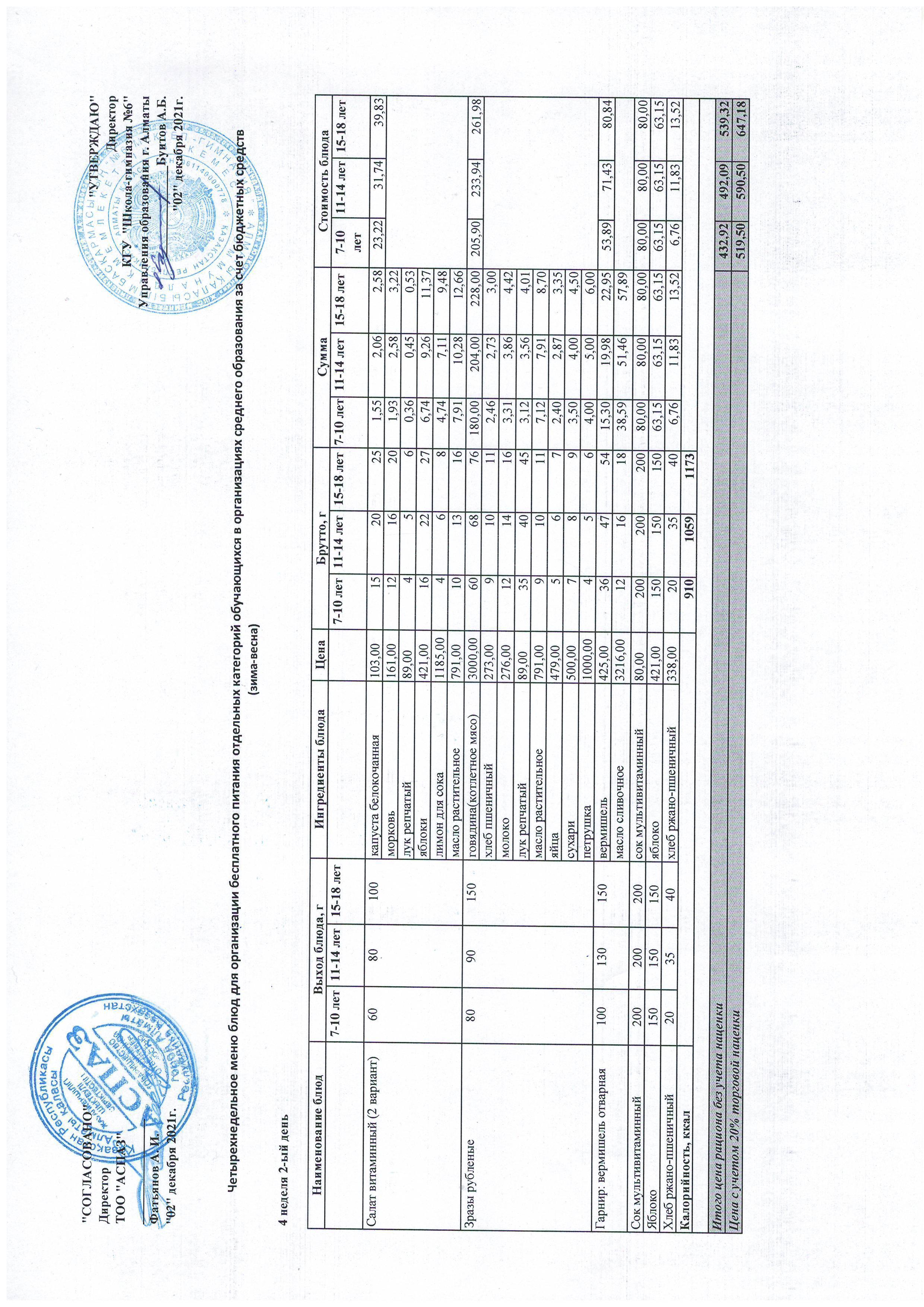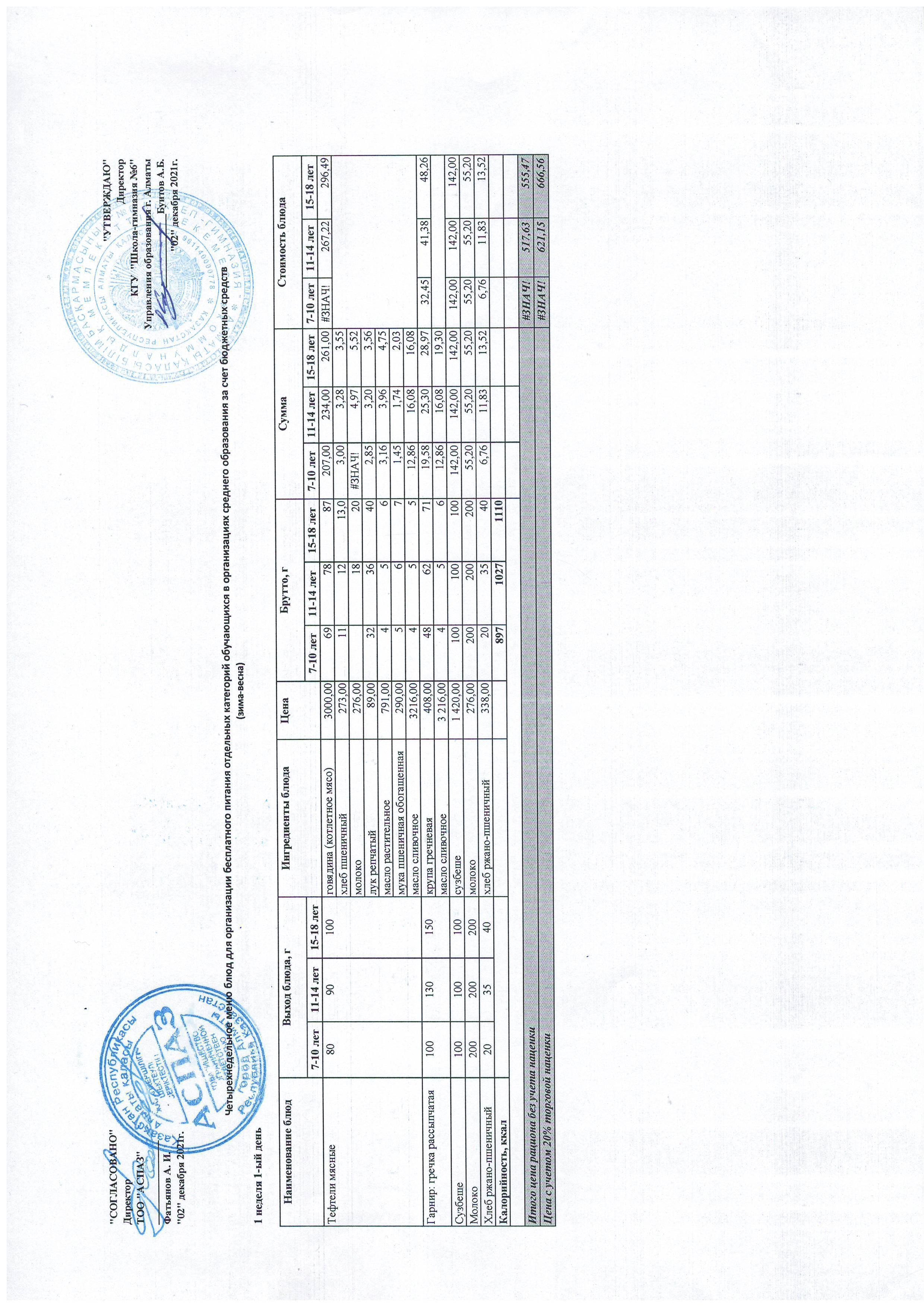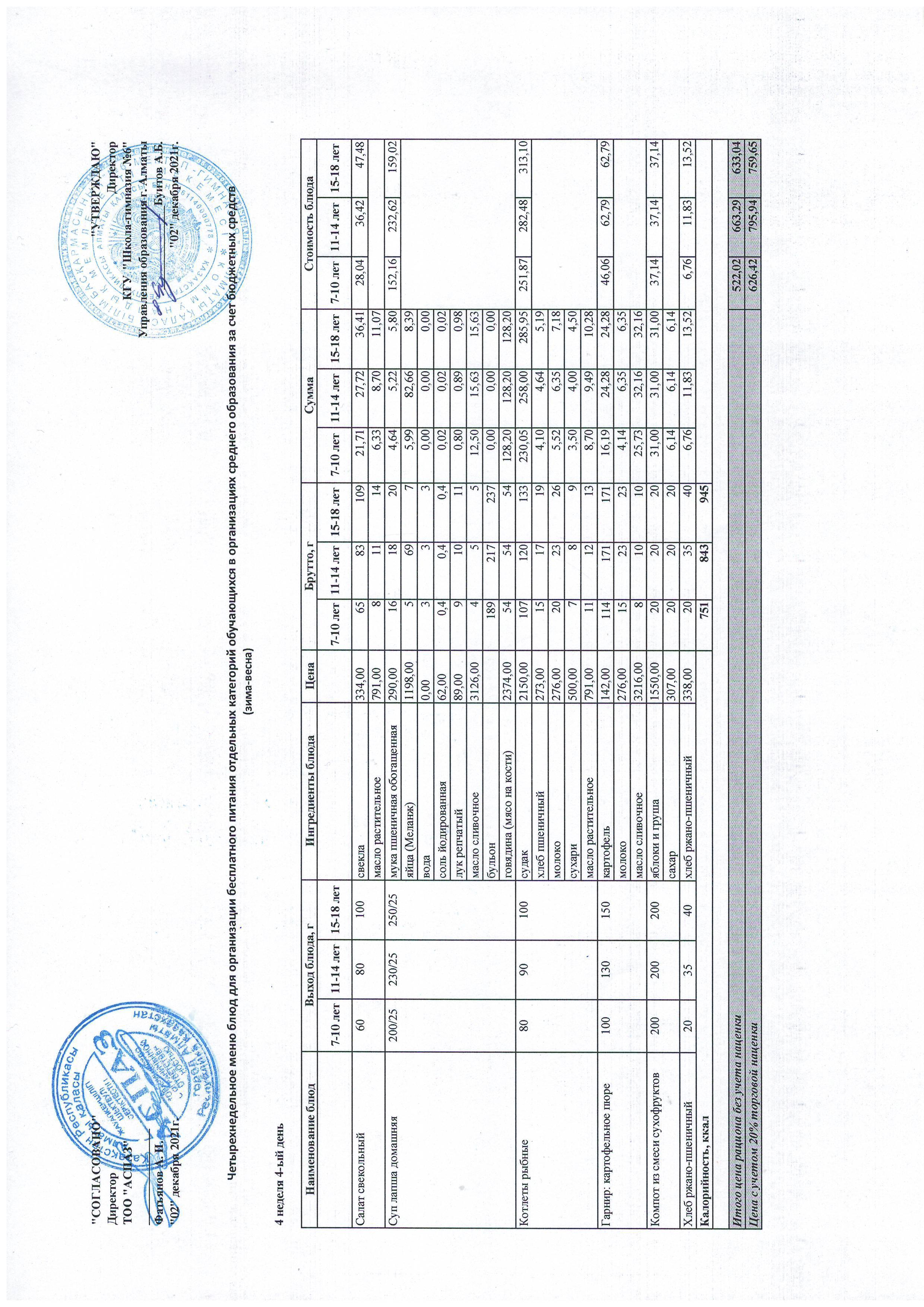 Меню Лето-Осень 2021-2022