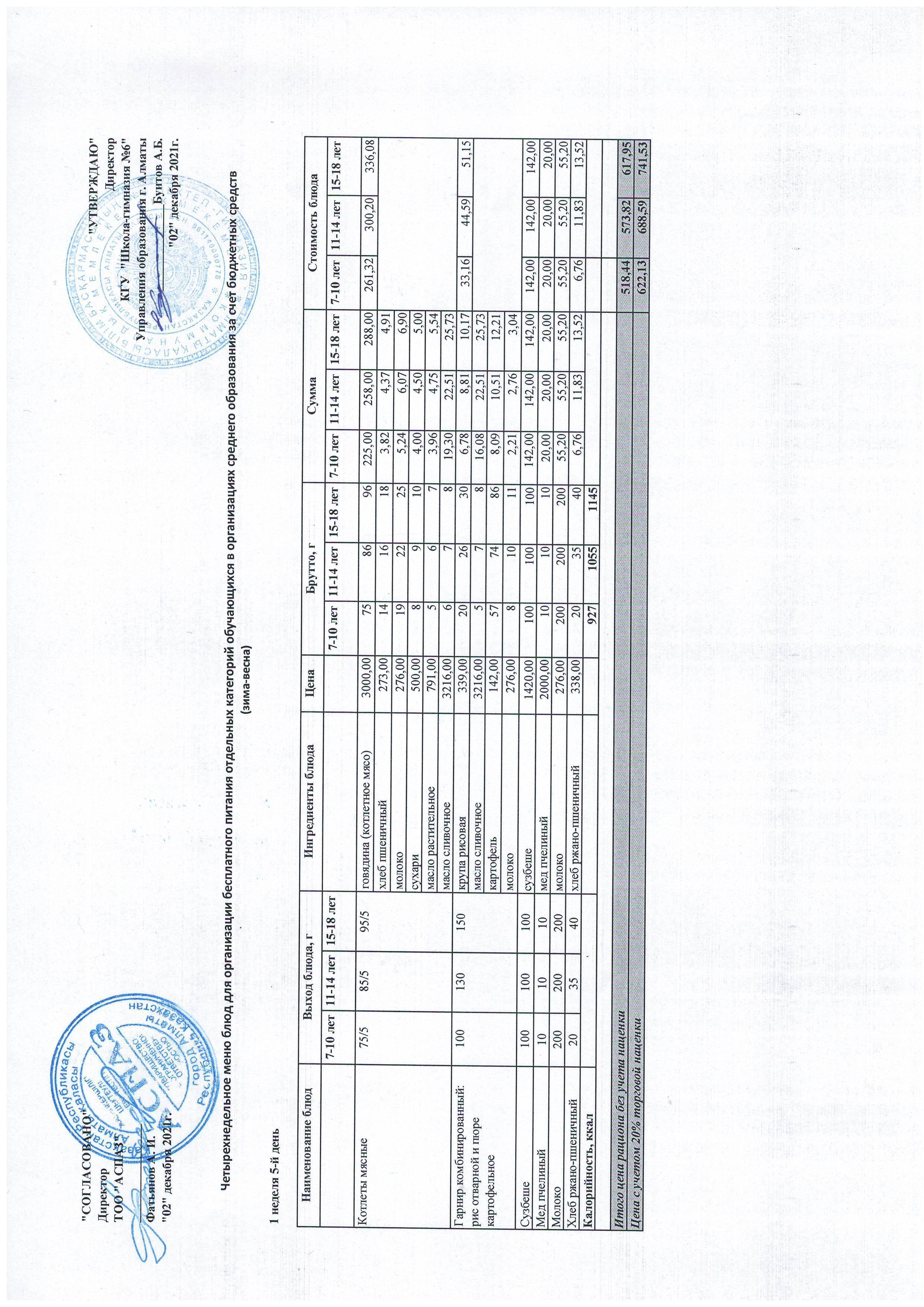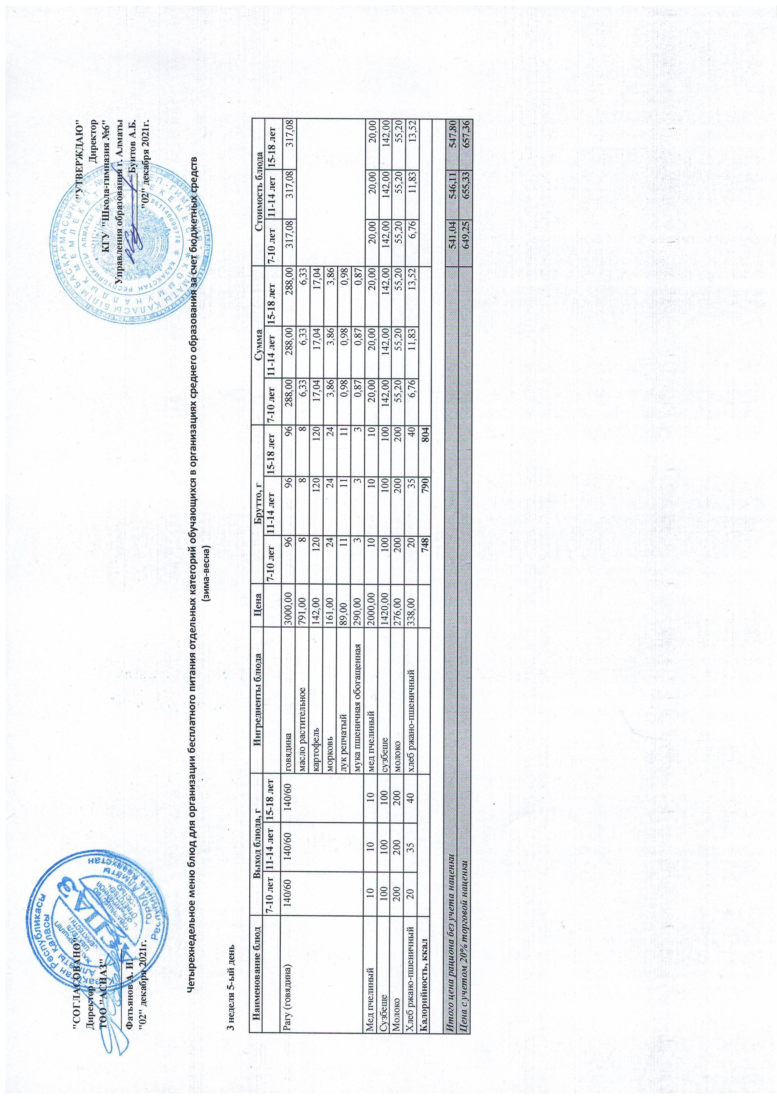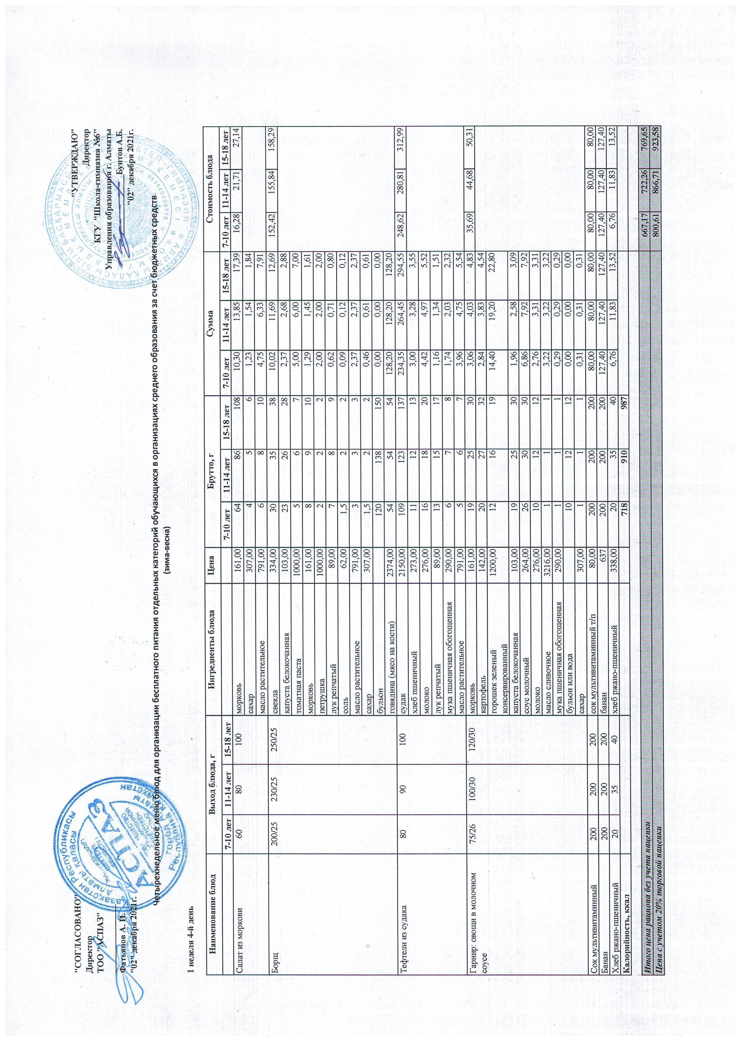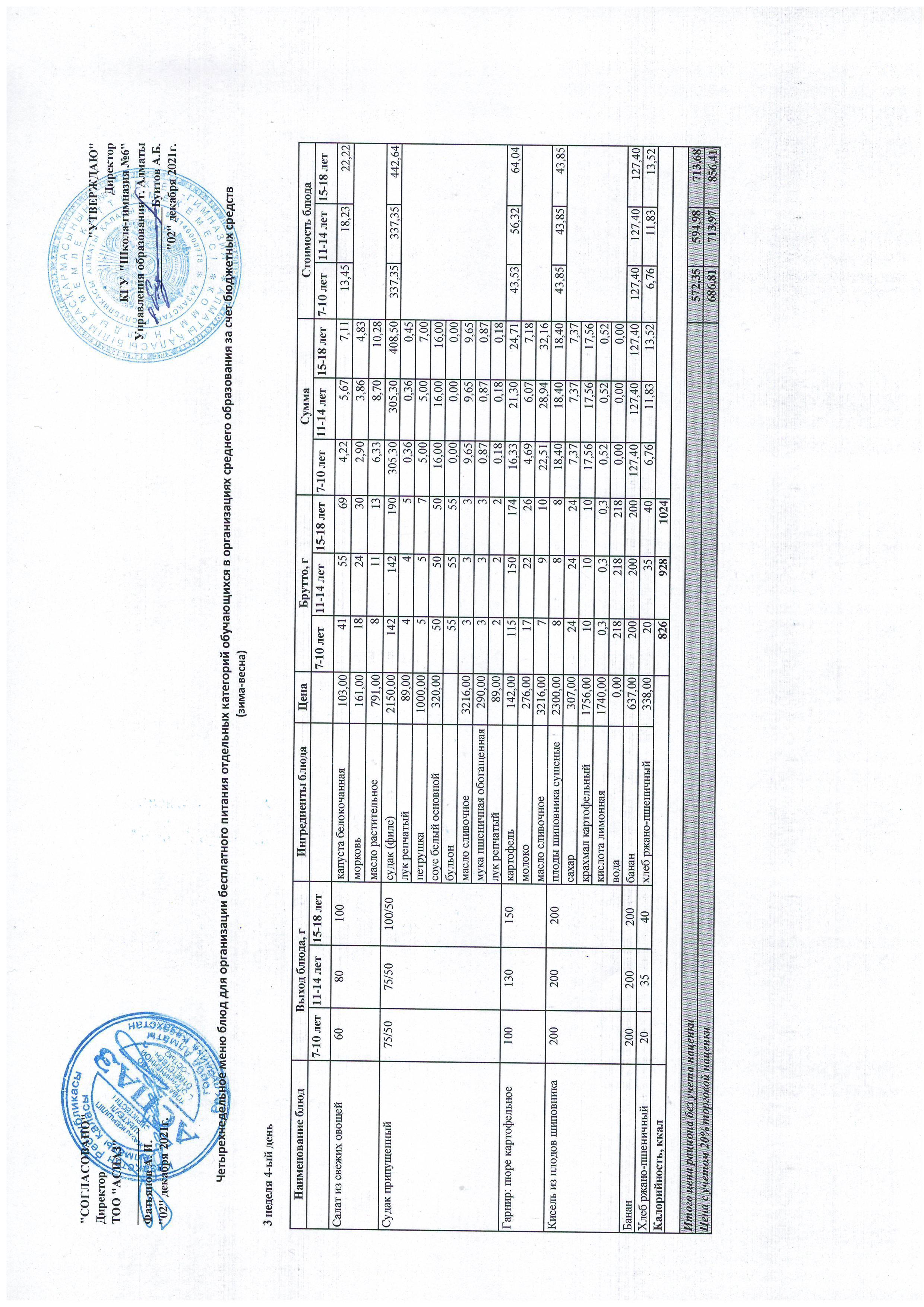 Меню Лето-Осень 2021-2022