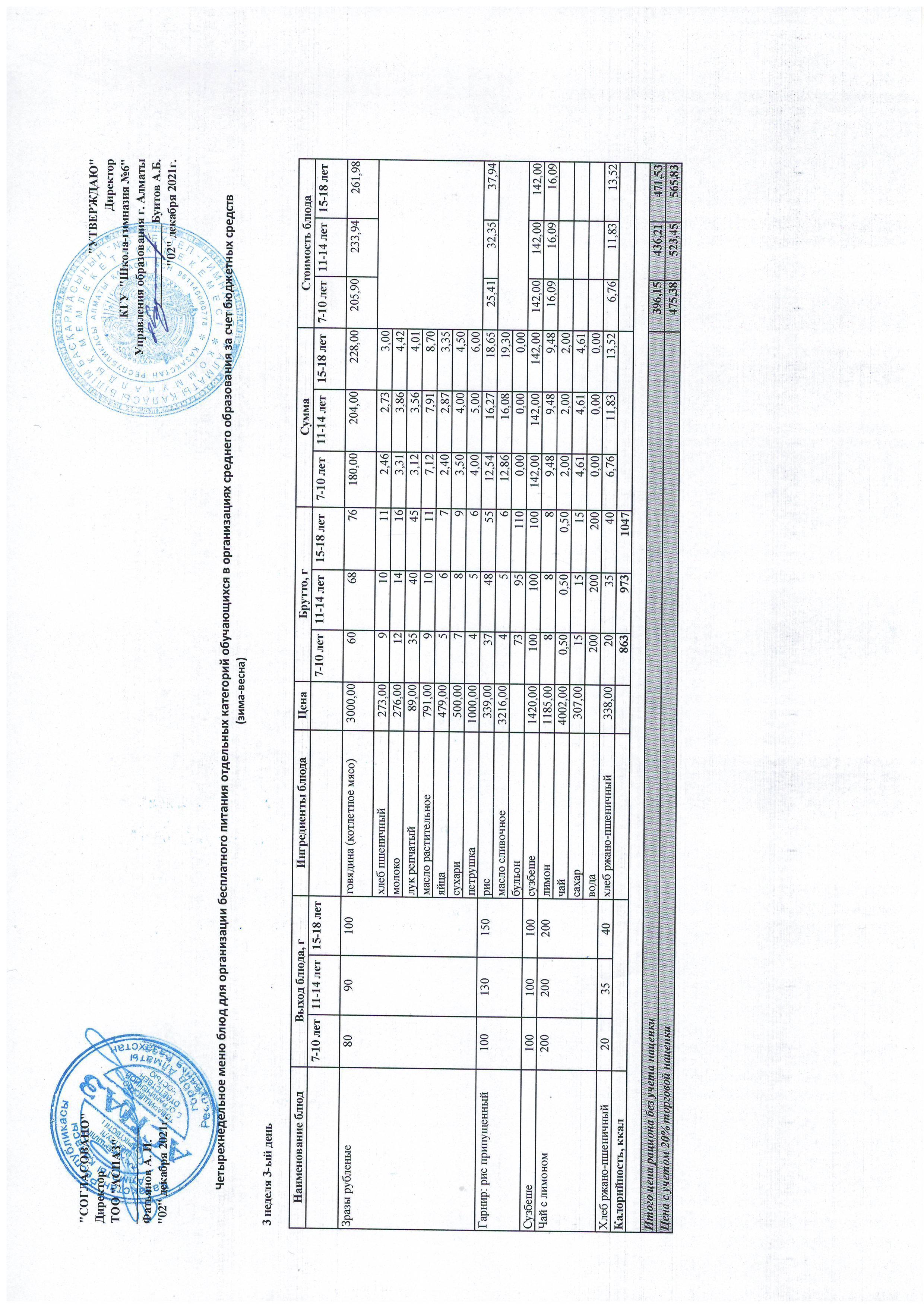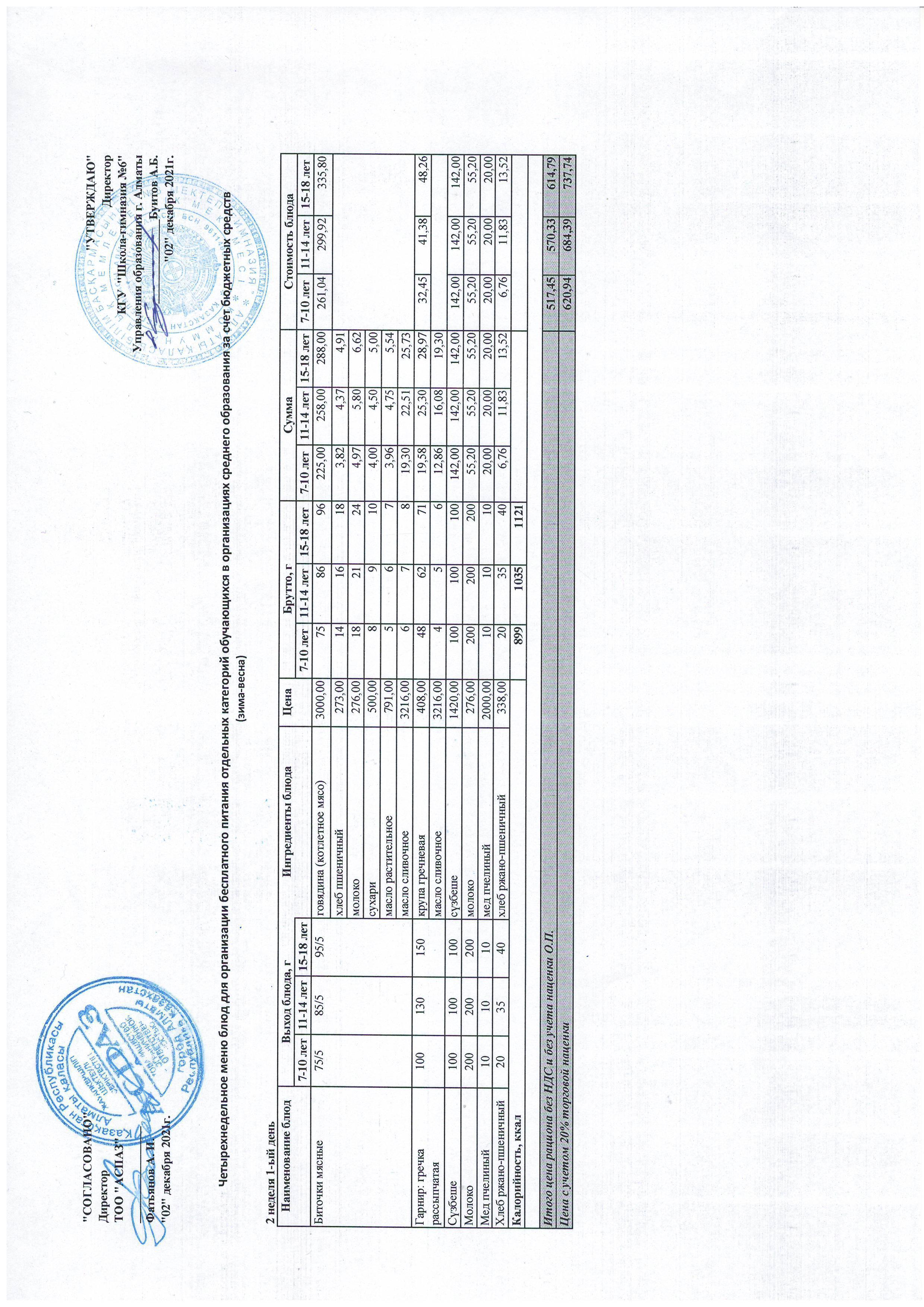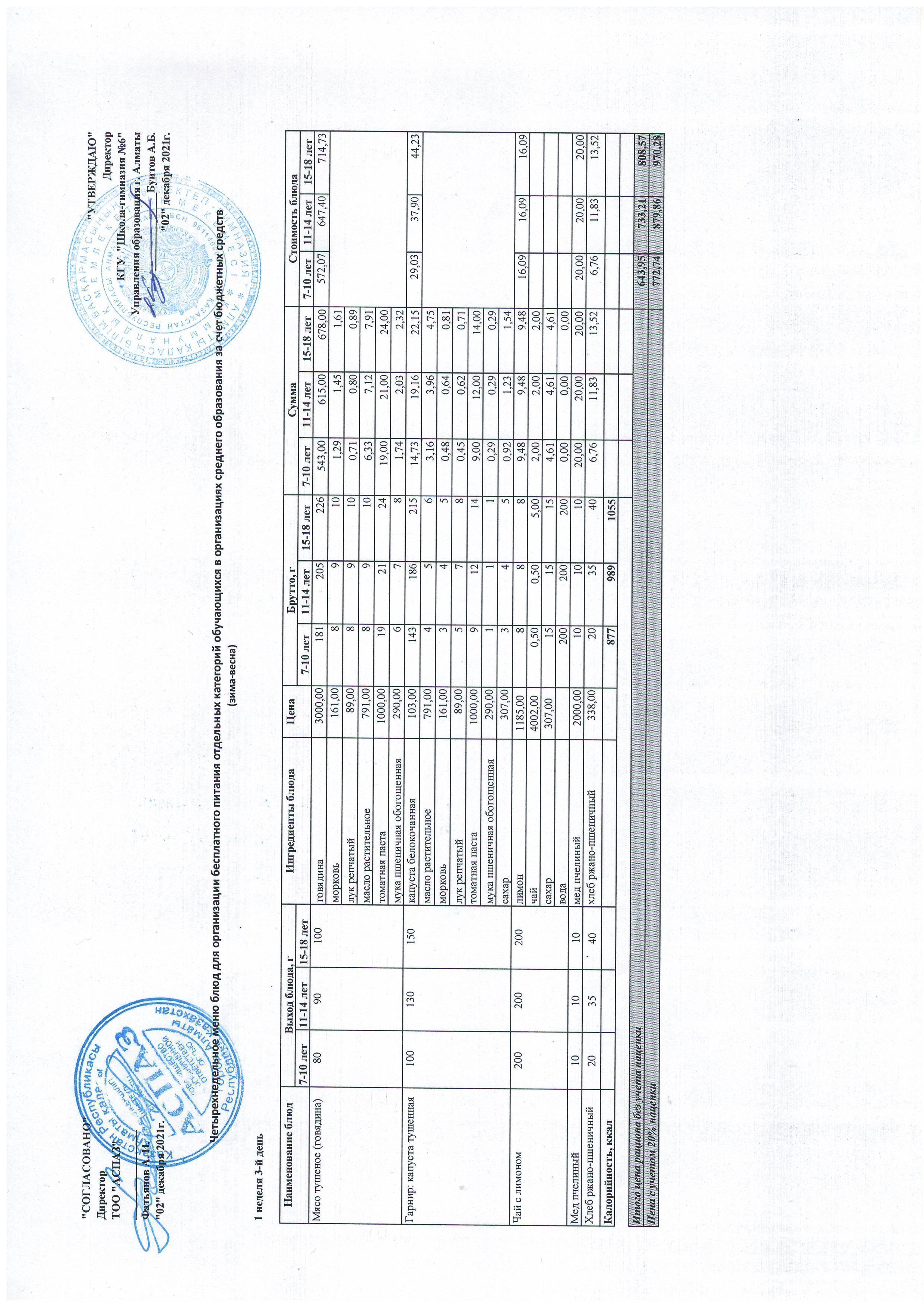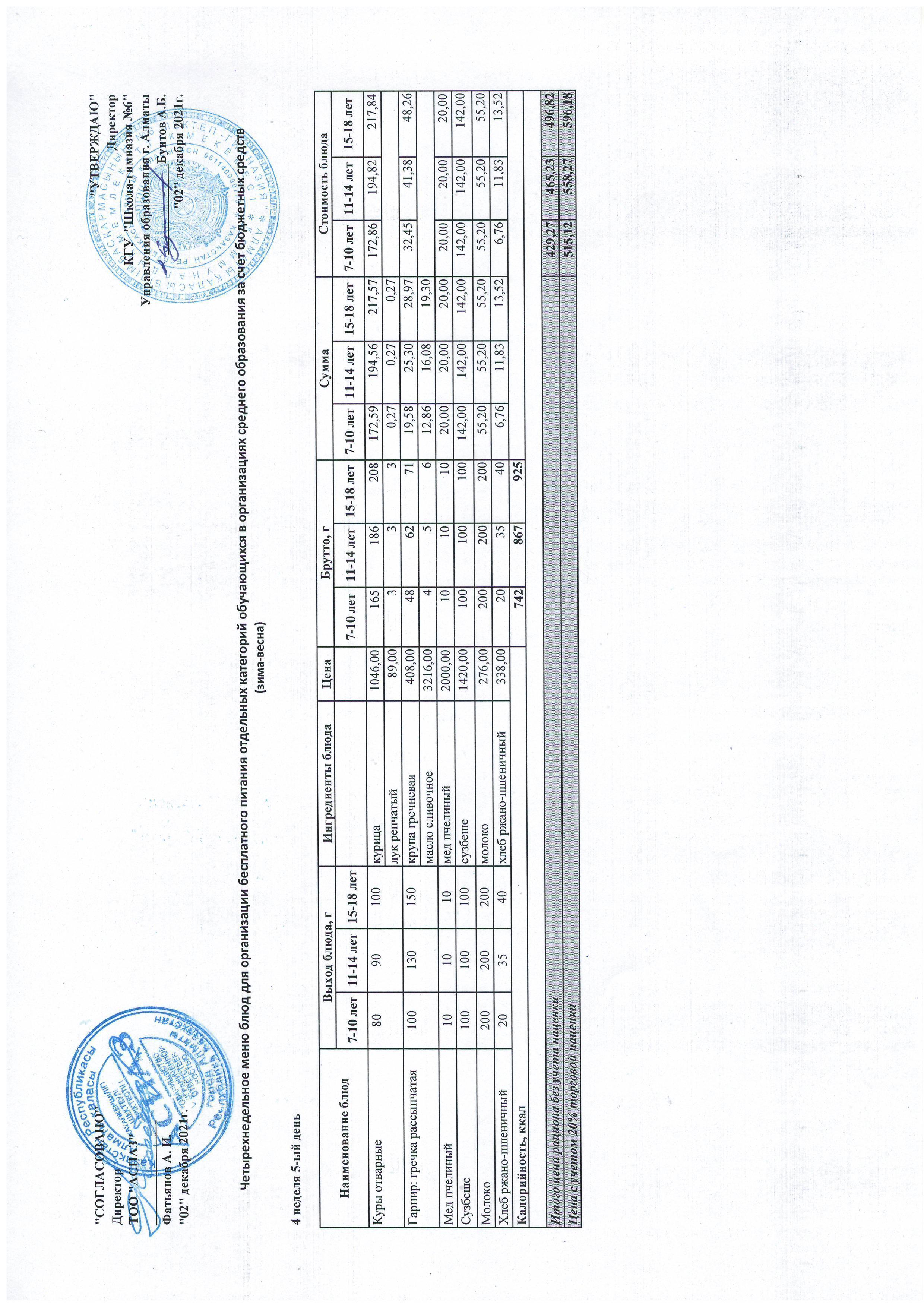 Меню Лето-Осень 2021-2022