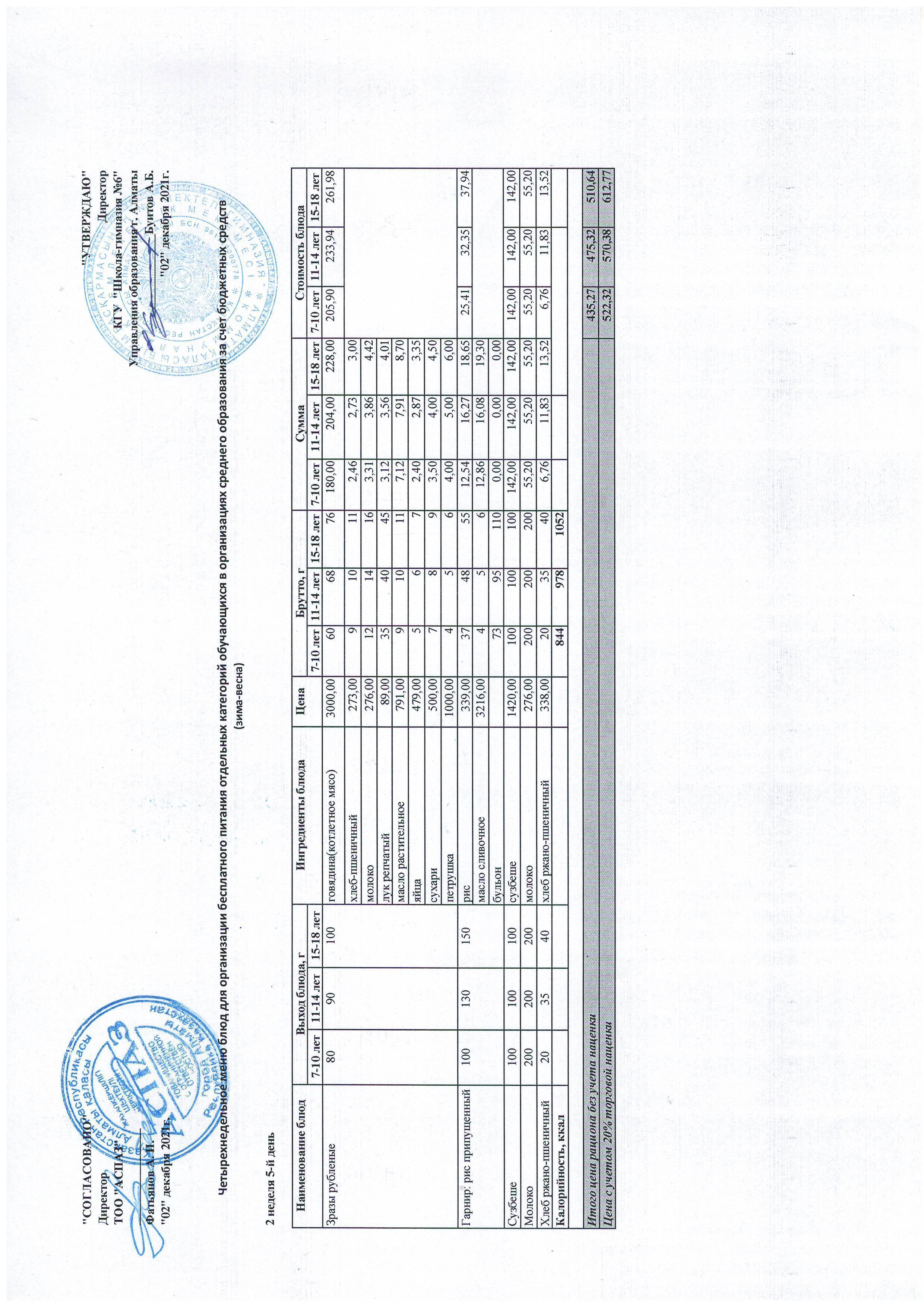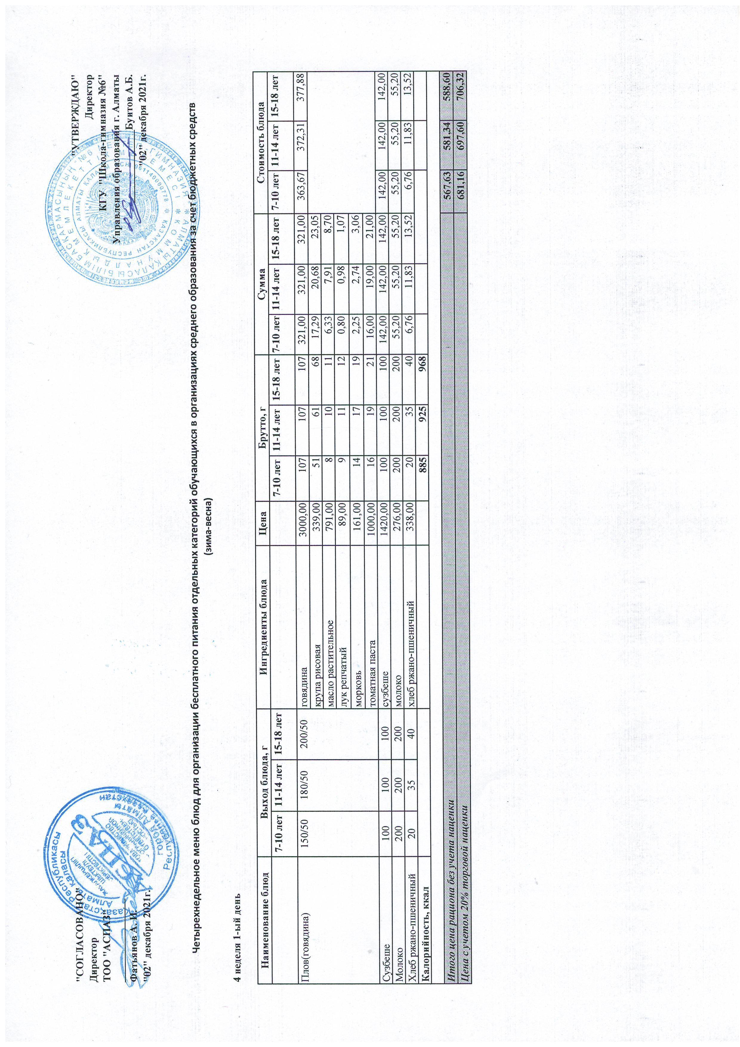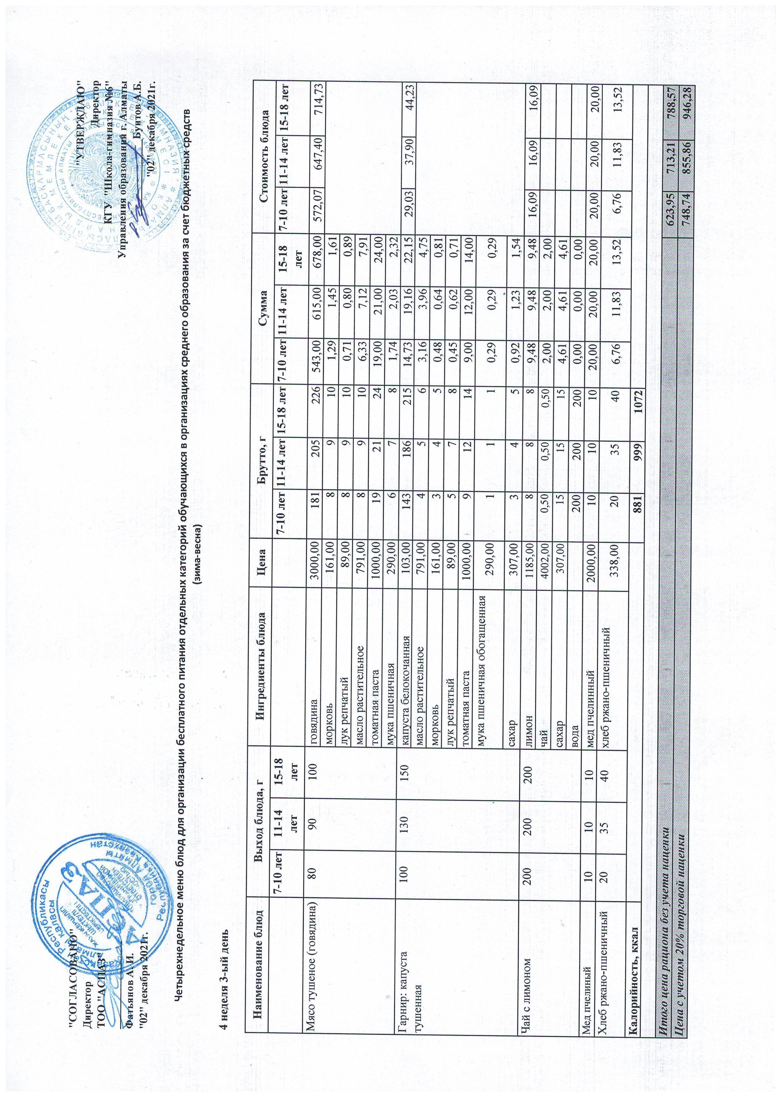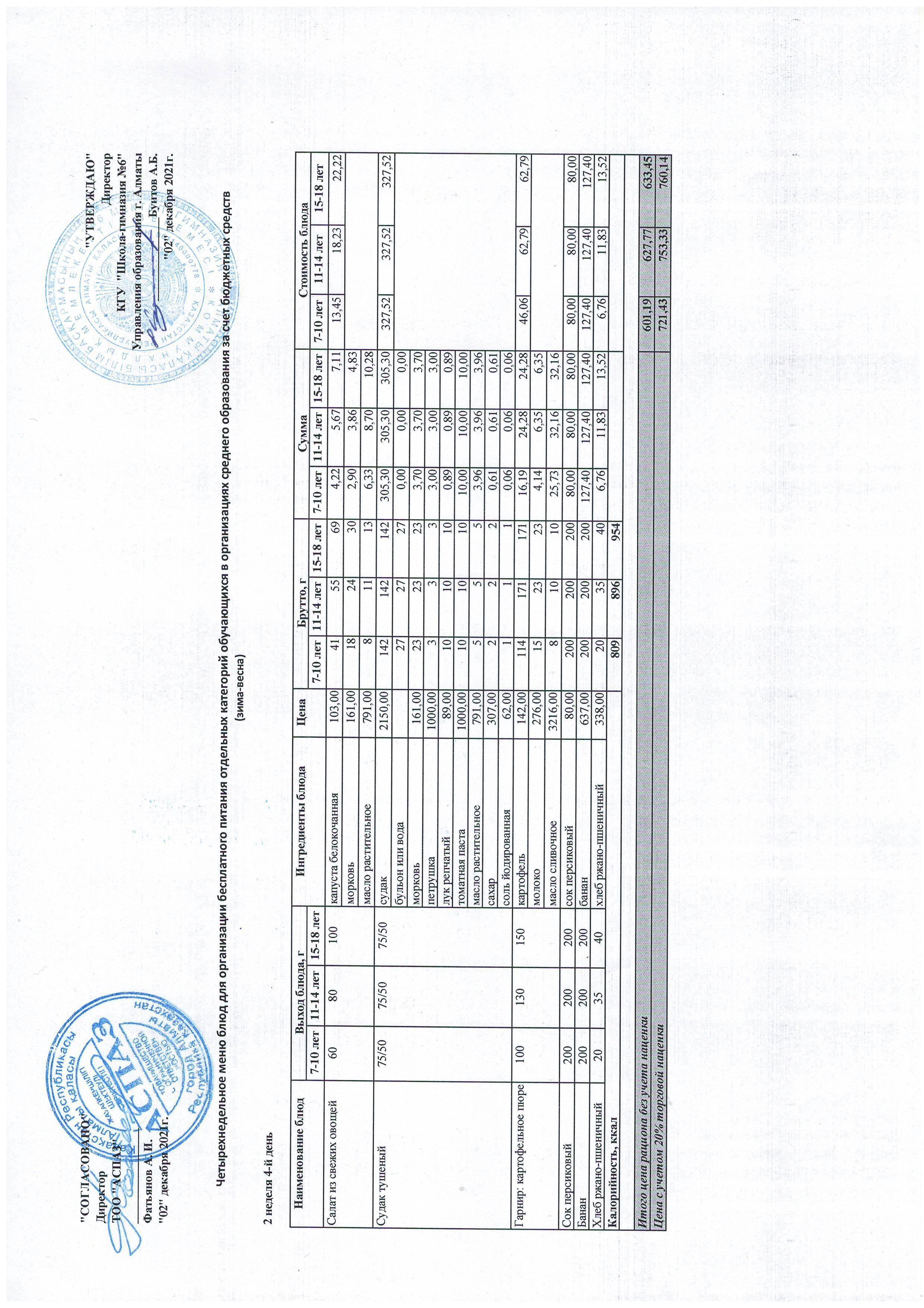 Меню Лето-Осень 2021-2022