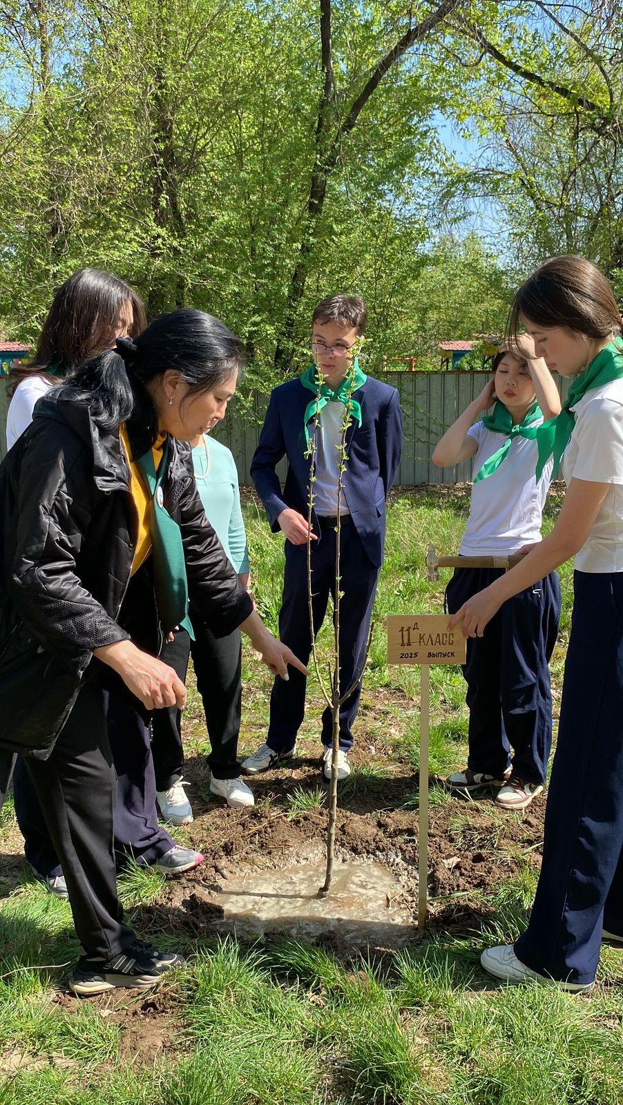 В 2025 году прощаясь со школой и входя во взрослую жизнь, учащиеся одиннадцатых классов сделали благое дело. Посадка деревьев станет доброй традицией среди выпускников нашей школы, в рамках экологической акции «Чистый Казахстан» и городской кампании «Алматы – наш общий дом». Таким образом ребята выражают благодарность своему учебному заведению.